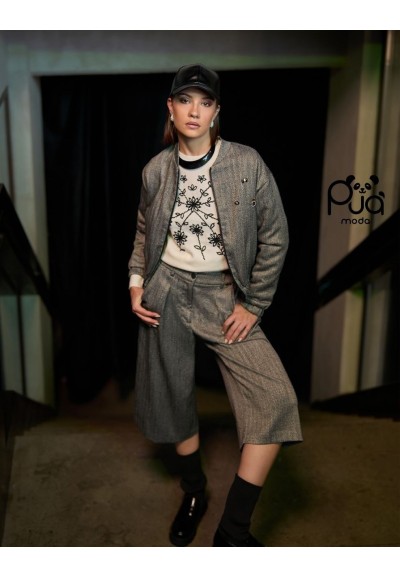 Giacca corta con motivo gessato per un look contemporaneo e sofisticato.