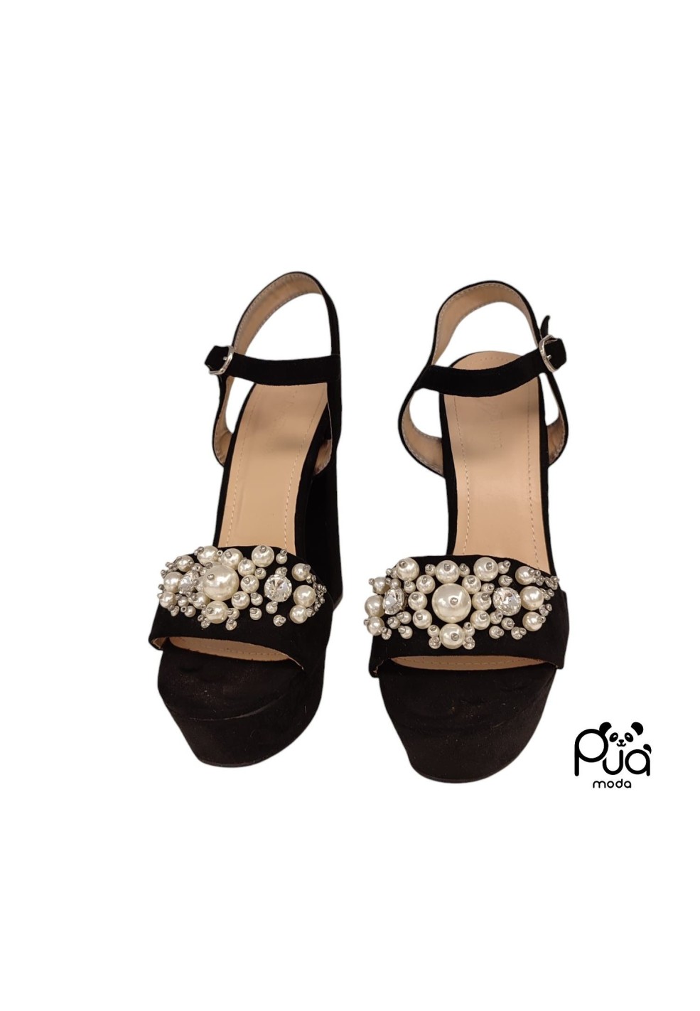Sandalo Donna in Pelle Scamosciata con Perle e Tacco 12 cm - Puà Moda