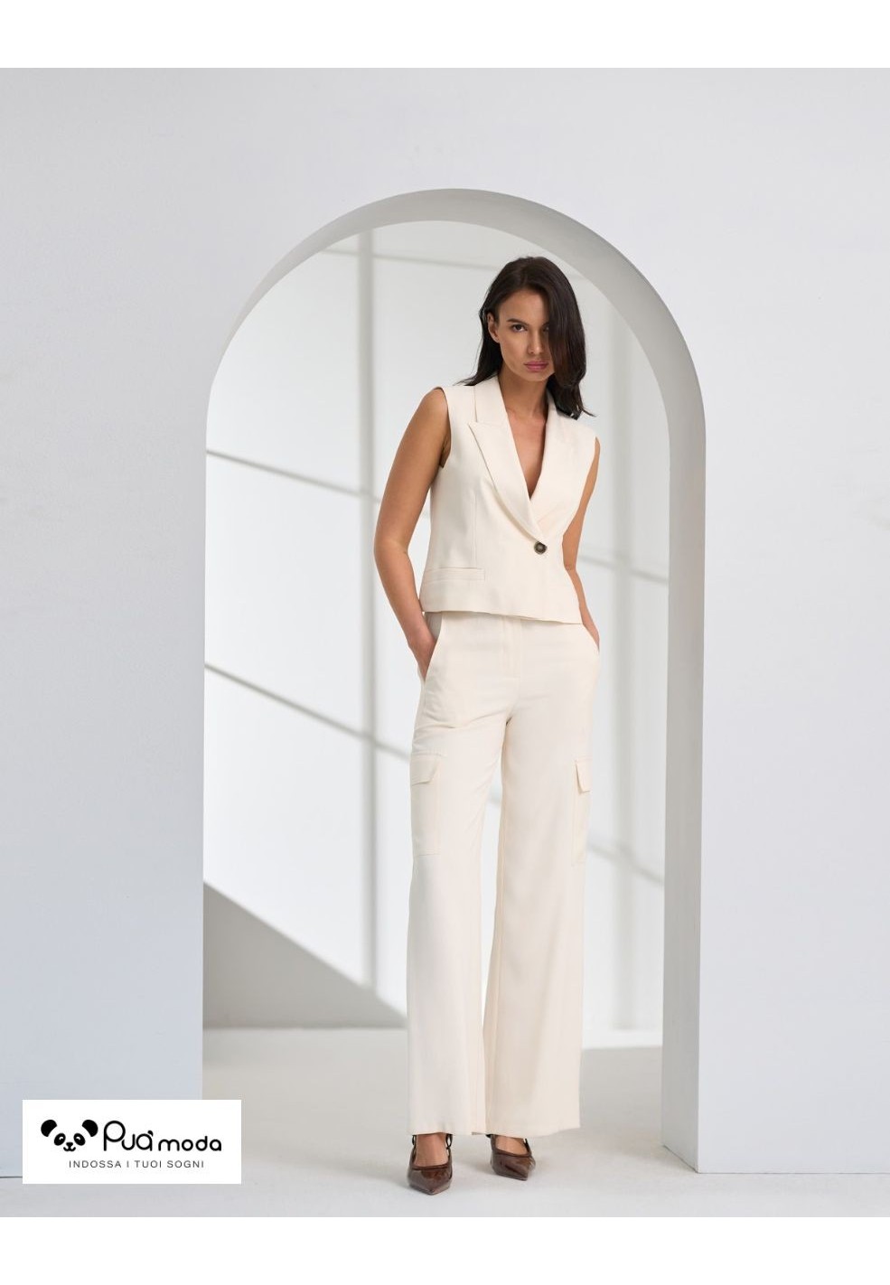 Camicia donna a righe con chiusura a bottoni, maniche a sbuffo e inserto in pizzo. Femminile e raffinata, perfetta per look eleganti e casual chic. 100% made in Italy.